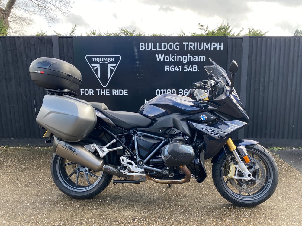 This is a brilliantly maintained and well cared for BMW R1250 RS SE Exclusive with a full BMW service history. The R1250 RS is renowned as one of the best sporty tourers on the market and the 1250 boats the latest upgrades including the power and dash. This being the Exclusive model means its is loaded with spec including Cruise control, Riding modes, TFT display, Quickshifter, adjustable screen, riding modes, electronic suspension, centre stand, Keyless ignition, LED indicators, ABS, Bluetooth connectivity unit and great sounding Akrapovic exhaust. This excellent example also come fitted with the BMW panniers, Shad top box and engine protectors.