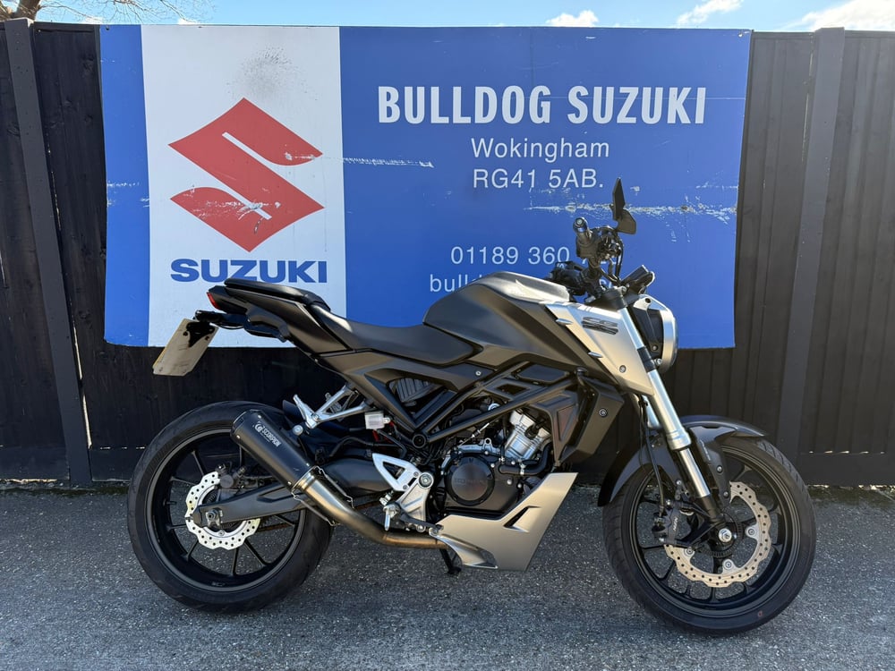 The Honda CB125R is Honda’s stylish, well-equipped, top-of-the-range A1 125cc. With its retro/modern 'Neo Café' styling echoing that of Honda’s bigger bikes in the range, this is arguably one of the nicest 125's on the market. This bike comes with a host of accessories including a Scorpion Exhaust, Tail Tidy, Aero Style Mirrors, Adjustable Levers, Tank & Fuel Cap Decal and Anodised Bar Ends. Bike will come with a Fresh Service for the new owner.