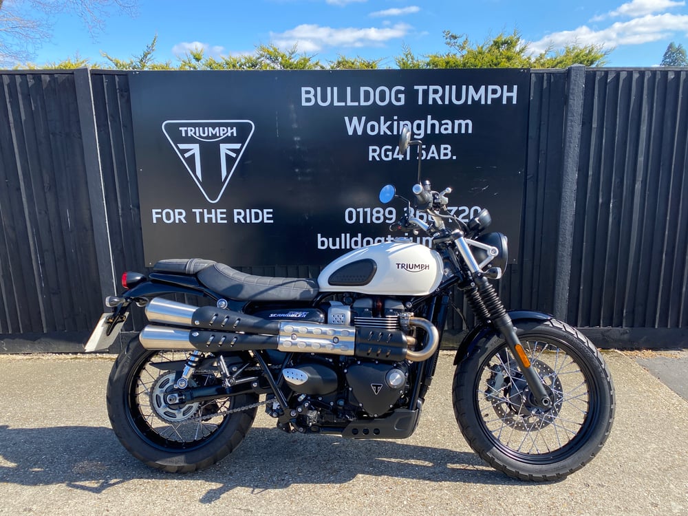 This is a great condition Triumph Street Scrambler with only 6112 miles on the clock and is in excellent condition. The Street Scrambler has fast become a firm favourite in the modern classic range renowned for its' torque rich and great sounding engine twined with brilliant handling and of course the iconic classic Scrambler style. This is the later version of the Street Scrambler with higher power, riding modes, traction control, ABS, Brembo brakes and advanced trip computer the Street Scrambler is a true modern classic. This Scrambler was originally supplied by us here at Bulldog Triumph and has been very well looked after, It also has a full dealer service history with us here too.